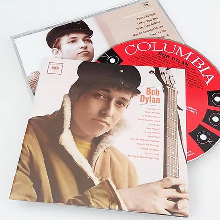 Álbum de estreia oficial lançado em março de 1962, “Bob Dylan” foi gravado em três sessões ao custo se 402 dólares e, segundo Bob, define parte de seu estilo inicial: “Eu toco canções folk com uma atitude rock ‘n’ roll. Foi isso que me fez diferente, me permitiu abrir caminho e ser ouvido”. Sobre o repertório do disco, ele resume: “São algumas canções que escrevi, algumas que descobri e algumas que roubei”. Antes mesmo do disco sair, Bob já manifestava sua insatisfação com o resultado do disco, que acabou, por fim, fracassando em vendas, mas tem seu valor. Muitos dos fãs só concebem ouvir esse disco na versão mono, e é deste álbum canções como “Talkin’ New York” (em que Dylan copia Guthrie), “In My Time of Dyin’” (uma das canções roubadas por Dylan no álbum também seria roubada pelo Led Zeppelin em “Physical Graffiti” na década seguinte) e, claro, “Song To Woody”, seu tributo ao mestre.