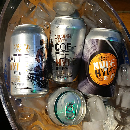 O primeiro estilo trabalhado pelo selo Caravan Records é o New England IPA batizado de HYPE. São três novíssimos rótulos para abrir o lançamento da Caravan Records: Nude Hype (NE IPA), que entra na linha anual da cervejaria e suas duas variações em parceria com o Franck’s Ultra Coffee, de Curitiba: a Coffee Hype – Side A (com café envelhecido em barril de Bourbon) e a Latte Hype – Side B (com lactose e café envelhecido em barril de Bourbon).