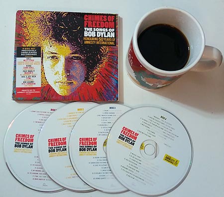 Bob Dylan com café, dia 57: A Anistia Internacional é uma organização não governamental fundada em 1961 que defende os direitos humanos. Com sede em Londres, a ONG conta com mais de 3 milhões de membros e apoiantes em todo o mundo. O objetivo declarado da organização é “realizar pesquisas e gerar ações para prevenir e acabar com graves abusos contra os direitos humanos e exigir justiça para aqueles cujos direitos foram violados”. Em 2011/2012, visando comemorar os 50 anos da organização e os 50 anos de carreira de Bob Dylan, a Anistia promoveu a produção de um álbum quadruplo com 76 artistas revendo, de maneira inédita, canções de Bob.