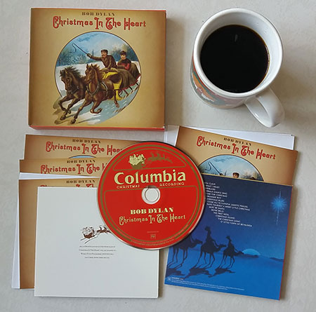 Bob Dylan com café, dia 34: você pode esperar tudo de Bob Dylan, e ainda assim ele irá te surpreender. Repetindo uma diabrite (tida como provocação nas duas vezes) que havia feito pela última vez em 1970, quando lançou dois álbuns no mesmo ano, o enormemente achincalhado “Self Portrait” e o familiar (e elogiado) “New Morning”, Dylan colocou nas lojas em 2009 primeiro o bem recebido “Together Through Life” e, seis meses depois, o natalino “Christmas In The Heart”, em que acompanhado quase que pela mesma banda que gravara o disco anterior (David Hidalgo, do Los Lobos, novamente brilha) rememora cânones natalinos num álbum cuja renda deveria ser revertida para instituições de auxilio a sem tetos. A crítica do Guardian (que deu cinco estrelas irônicas) é hilária – “Costumava haver um consenso civilizado entre os jornalistas – talvez ainda haja, em alguns setores das artes – que obras em benefício de caridade estivessem isentas do processo normal de crítica. Desta forma, o crítico claramente não tem o direito de considerar começar sua resenha sobre este disco natalino de Bob Dylan com a célebre exclamação de uma única linha empregada por Greil Marcus sobre ‘Self Portrait’ na Rolling Stone em 1970: ‘Que merda é essa?’” –, mas, ainda assim, há uma beleza estranha nessas 15 canções de natal cantadas pelo vocal cada vez mais rouco de Bob. Houve uma época na música pop que disco natalino era uma febre e garantia de sucesso de vendas. Alguns deles se tornaram clássicos no século passado (como “A Christmas Gift For You From Phil Spector”, de 1963 e “Elvis Presley Christmas Album”, de 1957) e, neste século, muita gente ainda se aventurou no estilo (de Weezer a Aimee Mann, de She & Him a Cee Lo Green até Sufjan Stevens), mas absolutamente ninguém esperava isso de Bob. E o resultaldo é… divertido! “São seus vocais desequilibrados que tornam este disco de natal interessante e, de certa forma, apropriado”, provocou o Pitchfork. “É um aceno claro para as músicas que Dylan ama, um autorretrato muito melhor do que o ridículo lançamento dos anos 70”, comparou a BBC. “Essa é outra maneira de Dylan dizer que suas raízes estão em toda parte”, observou a Rolling Stone. Papai Noel e Bettie Page (e eu) curtiram.