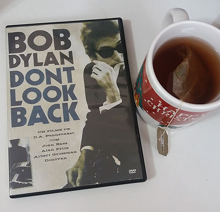 Bob Dylan com café, dia 65: 50 anos se passaram e “Don’t Look Back” continua sendo não só o melhor documentário sobre Bob Dylan, mas um dos melhores documentários de rock já feito em todos os tempos (para o British Film Institute, é um dos 10 documentários de rock essenciais na história). Lançado em 1967, “Don’t Look Back” traz o cineasta DA Pennebaker acompanhando Dylan na turnê britânica de maio de 1965, sua última turnê acústica antes da tempestade sônica que iria começar no Festival de Newport, em junho, e se alastrar por todos os lugares, culminando novamente em uma turnê inglesa (e no grito de “Judas” em Manchester, 1966). Ou seja, “Don’t Look Back” flagra Bob Dylan pré-celebridade pop, tendo que lidar com jornalistas despreparados (é famoso o trecho do filme em que ele desanca um repórter da Time Magazine) num meio musical que ainda carecia de profissionalismo (chega a soar cômico ver seu manager, Albert Grossman, tendo que improvisar em cima da hora teatros para os shows e aceitar cachês abaixo de valores de mercado). A cena de abertura do filme serviu como uma espécie de videoclipe (que se tornaria um clássico) para a música “Subterranean Homesick Blues”, na qual Bob exibe e descarta uma série de cartões contendo palavras e frases selecionadas das letras (incluindo erros intencionais e trocadilhos) com Allen Ginsberg fazendo uma aparição. Joan Baez também é vista no filme (numa situação que soa um rompimento do casal) além de Marianne Faithfull, Donovan e John Mayall, entre outros.