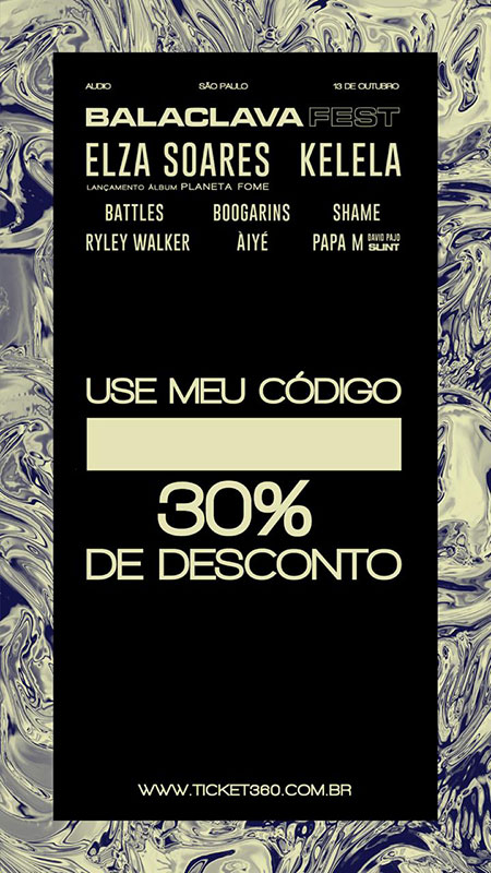 O Balaclava Fest 2019 acontece no domingo, 13 de outubro, na Audio Club, e destaca o show de lançamento do álbum ‘Planeta Fome’ de Elza Soares, o pop alternativo com R&B de Kelela, o duo norte-americano de rock matemático Battles, o punk britânico contagiante do shame, o folk setentista de Ryley Walker, o tropicalismo psicodélico do Boogarins, o noise experimental de David Pajo / Papa M do Slint (official), além de ÀIYÉ com sua sonoridade eletrônica criada pela carioca ÀIYÉ. Partiu!