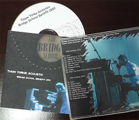 A Bridge School é uma instituição californiana que auxilia crianças com deficiências e necessidades de comunicação. Criada por, entre outros, Pegi Young, que foi casada com Neil Young por 36 anos, a Bridge School promoveu entre 1986 e 2016 uma série de festivais beneficentes para arrecadar fundos, sempre envolvendo grandes artistas. Este bootleg flagra os dois shows solo de Thom Yorke tocando hinos do Radiohead e um cover de Neil Young em outubro de 2002! No repertório, “There There”, “Lucky”, “Street Spirit”, “True Love Waits” e “Paranoid Android”, entre outras!