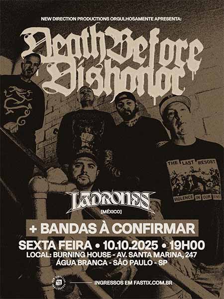 As bandas de hardcore Death Before Dishonor (EUA) e Ladrones (México) se apresentam no Burning House, em São Paulo, no dia 10 de outubro! Ingressos!