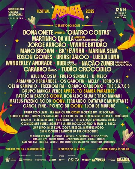 O festival paraense Psica divulgou o line-up completo de sua edição que acontece de 12 a 14 de dezembro em Belém!