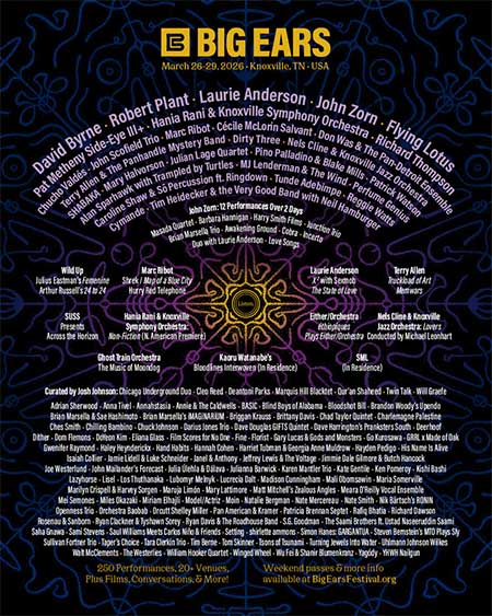 O Big Ears Festival, que ofereceu um dos line-ups mais bacanas de 2025, volta a caprichar e anuncia seu line-up completp para a edição que acontece de 26 a 29 de março de 2026 no Tennessee! Incrível!