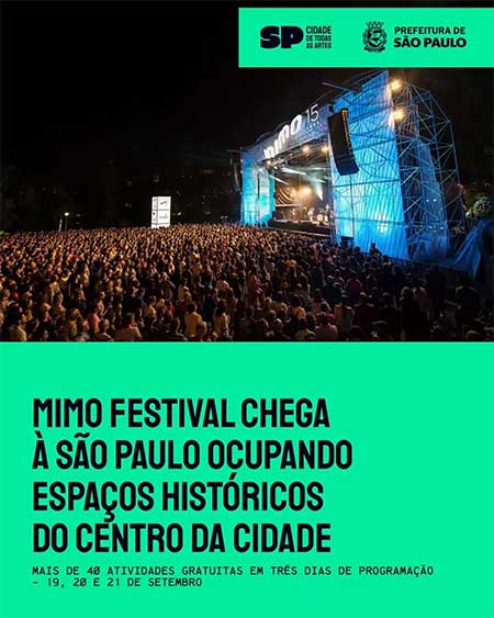 MIMO Festival chega a São Paulo entre 19 a 21 de setembro com extensa programação gratuita de filmes, workshops, rodas de conversa e shows de Edu Lobo, Lia de Itamaracá e Karina Buhr, Cordel do Fogo Encantado, Bixiga 70, Ortinho e Maria Alcina, entre outros.
