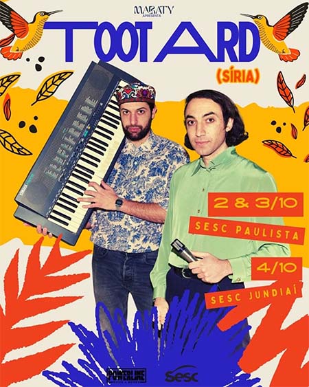 O duo sírio TootArd, formado pelos irmãos Hasan e Rami Nakhleh, cujo nome significa “Morangos”, se apresenta no Sesc Avenida Paulista nos dias 2 e 3 de outubro, quinta e sexta-feira, às 19h30, e no Sesc Jundiai no dia 4 de outubro, sábado, às 19h.