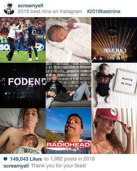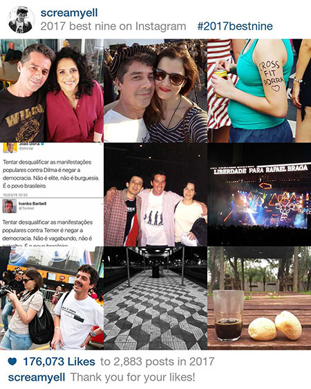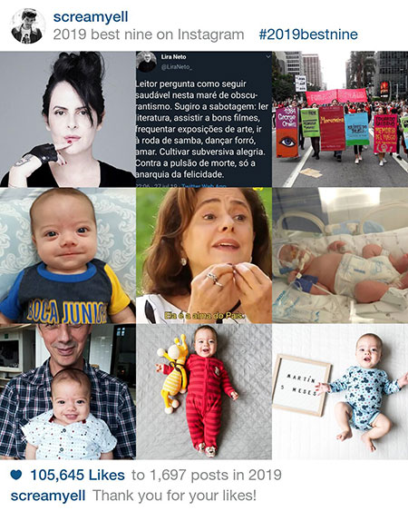 As nove imagens mais curtidas no Instagram Scream & Yell nos anos de 2015, 2016, 2017, 2018 e 2019 segundo a contabilização do Best Nine