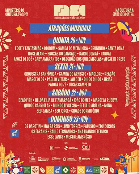 Seu line-up da edição 2025, que se desdobra em diversas áreas (Artes, Literatura, Cinema, Música, Cortejos) e irá acontecer dias 20, 21, 22 e 23 de novembro, foi anunciado e a seleção musical está sensacional, uma das melhores do país.
