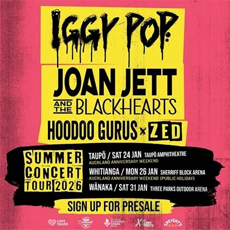 A Nova Zelândia irá receber em janeiro três shows da The Summer Concert Tour com Iggy Pop, Joan Jett, Hoodoo Gurus e Zed!