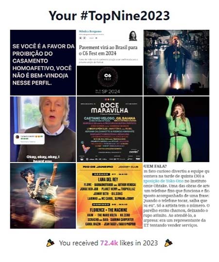 As nove imagens mais curtidas no Instagram Scream & Yell nos anos de 2015 a 2023 segundo a contabilização do Best Nine / Top Nine!