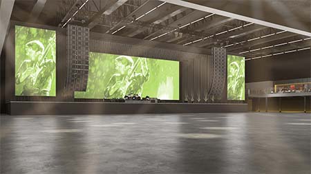 Palco com 500 m², área de cena livre com 268 m² e altura de 9,4 m;