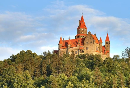 Visite o castelo de Bouzov, joia romântica da Morávia Central, e volte aos tempos em que era a residência dos Cavaleiros da Ordem Teutônica!O castelo medieval Bouzov é um daqueles lugares da Morávia que você não deve perder. Muitos filmes foram rodados nos seus espaços, entre outros, uma série de histórias tchecas e também a Princesa Fantaghiro, uma obra italiana. Além disso, ao contrário de outras residências medievais, o castelo nunca caiu em ruínas. A partir do final do século XV, esteve nas mãos dos Cavaleiros da Ordem Teutônica