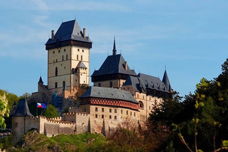Por último, mas não menos importante, convidamos você a visitar o castelo favorito do rei Carlos IV!. O Castelo de Karlstein ocupa um lugar excepcional entre os outros castelos tchecos. Foi construído pelo rei tcheco e imperador romano Carlos IV como uma dependência para depositar os tesouros reais e coleções das relíquias sagradas e as joias da coroa. Também é muito impressionante a ordenação dos edifícios do castelo, desde a aldeia ao pé do castelo até os palácios imperiais, onde ficam as torres, que vão surpreendê-lo pela sofisticação. Na Capela da Santa Cruz, você pode observar com calma as pinturas do Mestre Teodorico.Como um fato curioso, este é o castelo mais visitado do país e onde os tesouros reais foram mantidos.