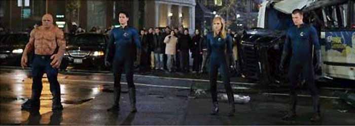 Não parece haver um problema único. A falha da produção está no conjunto. Roteiro, direção, elenco, efeitos, tudo precário demais. Senão, vejamos: o enredo segue a estrutura mais usual deste tipo de trabalho, sem ao menos se preocupar com alguma lógica interna e levado por diálogos beirando a idiotice. Os acontecimentos se sucedem totalmente ao acaso, sem que nada se encaixe com coisa alguma. Não há uma verdadeira ameaça a ser enfrentada, inexiste um conflito, exceto as rixas entre dois antigos amigos (Reed e Victor). Mesmo a tendência à comédia não consegue fazer com que se deixe de lado a pura falta de rumo. Além disso, o filme contém a referência aos quadrinhos mais deslocada e despropositada dos últimos tempos: Alicia Masters, originalmente uma sensível artista plástica cega que se apaixona pelo Coisa, torna-se aqui, em rápida aparição, uma vulgar mulher de boteco que avança gratuitamente nas pedras de Ben Grimm. Lamentável.