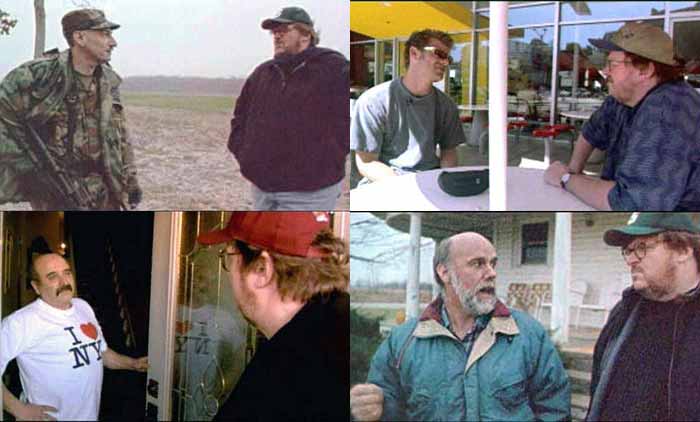 Moore faz ao longo do filme. Nada contra o recurso de aparecer