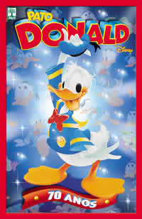 E calha que para comemorar esses 70 anos a Editora Abril mandou essa pedrada: Pato Donald 70 Anos, uma edição especialíssima, formato americano, 208 páginas, coisa linda. À altura do seu talento e de sua história. Antes de escrever esse texto, antes mesmo da revista chegar nas bancas, eu já estava me preparando para reclamar da tradução dos balões, que foi calamitosa na série O Melhor da Disney, lançada esse ano também para celebrar seu aniversário. Mas a (justificada) ranhetice não foi necessária: o diálogo foi vertido para o português com categoria e respeito. Nem precisei ficar esperneando de punhos em riste, como você sempre faz.