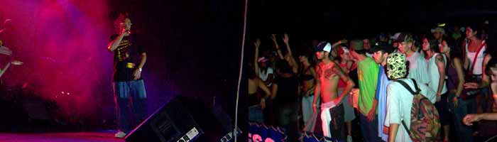 Os shows, realizados no ginásio do clube, contaram com uma excelente estrutura de palco, ótimo som, bebida barata, o que resultou em um encontro de pessoas em busca de paz e diversão. Poderia citar as diferentes tribos presentes, como fãs de rap, hippies, negros, brancos, loiras, descendentes de orientais, ruivas; enfim, gente de todo o tipo. Mas para escrever sobre algo que buscou a união, o melhor é apenas falar de gente, isso mesmo: gente, seres humanos, todos iguais, desencanados, uns sem camisa, de chinelo, outros não, diferentes, mas iguais (lembrando citação do senhor Miyagi em Karatê Kid). Todos a procura de diversão, música ou mensagens bacanas. O mundo já anda louco pra cacete, dividido demais. Até em assuntos que deveriam servir para divertir e unir como o esporte (leia-se: torcidas de futebol) e religião, acaba-se morrendo! Assim sendo, a música não pode servir para isso. Então vamos falar de música.