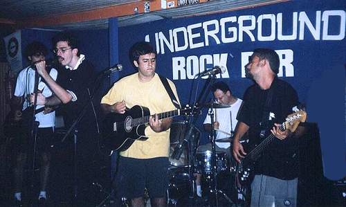 o Smiley, em 1999, banda formada por cinco jornalistas, cada um saído