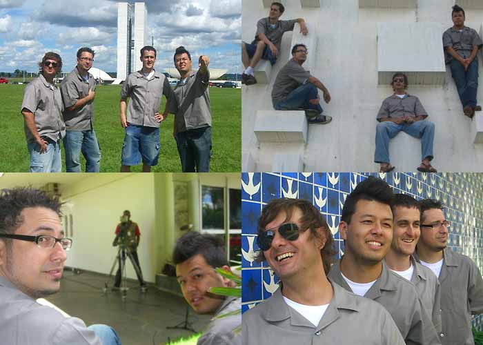 no gramado em frente ao Congresso; escalamos a parede cubista
