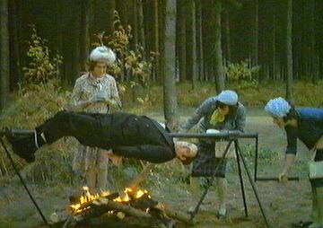 quando Gilliam tenta segurar o riso no esquete da aula de trotes).