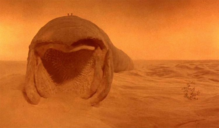 Em se tratando de atuações, porém, McLahlan rouba a cena, se jogando com abandono e dedicação em direção a um papel difícil. O mesmo pode ser dito de Young e Stewart, esbanjando sua versatilidade em seus respectivos papéis, o que ajuda a valorizar os impressionantes sets e figurinos (com destaque para a muito comentada sunga utilizada por Sting, ainda que nem sempre levada a sério). Falando nisso, o trabalho animatrônico dedicado à caracterização de Arrakis, e dos vermes gigantes que o habitam, se tornou referência de cinematografia, e os magníficos storyboards realizados previamente não perderam em sua transposição frente às câmeras. Outro ponto de curiosidade é relacionado à trilha sonora do filme, composta e executada em grande parte pela banda americana Toto. “Em grande parte” por causa do insuspeito envolvimento do músico e produtor Brian Eno, cuja contribuição (o etéreo “Prophecy Theme”, feito ao lado do parceiro Daniel Lanois) não soa deslocado junto às composições do experiente grupo, que dão o tom da grandiloquência da adaptação ainda que não funcionem tão bem como obras isoladas de seu complemento visual.