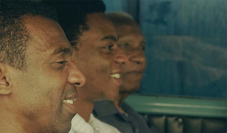 “Veraneio: Uma Antologia Negra” se desenha a partir da narrativa de três gerações da família Pereira: Osvaldo, Dinho, Jean. Três homens negros com três experiências distintas com a música e com a pista de dança e que se entendem em suas semelhanças e que se celebram e trocam em suas diferenças. A possibilidade de celebrar essa trajetória geracional é uma das grandes belezas do filme de Nalu Silva, que consegue captar com delicadeza a última discotecagem de Seu Osvaldo. Esse último encontro do discotecário com a pista de dança aconteceu no topo do Edifício Martinelli, espaço icônico do centro de São Paulo, e local que foi pista de muitos dos bailes da Orquestra Invisível Let’s Dance lá nos anos 1950 e 1960. Foi o fechamento de um ciclo, um reencontro de Seu Osvaldo com um espaço fundamental de sua história.