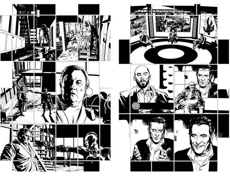 O normal nos quadrinhos é o desenhista fazer um layout da página, aí mostra para o editor/escritor ou para o escritor. Aí eles aprovam e a pessoa vai e finaliza. Faz o desenho à lápis e depois faz a pintura. Mas eu sou muito preguiçoso (risos). Lembro que eu estava fazendo um projeto da Marvel há uns vinte anos. E ele estava muito atrasado. Eu disse ao editor que ia fazer direto na página, sem fazer layout. “Qualquer alteração, a gente faz na arte-final”, disse a ele. Desde então, passei a fazer assim, sem layout. É algo que não precisa. Por exemplo, sem querer me comparar, claro, mas na AWA, a gente trabalhou com o (J. Michael) Straczynski. Você vai pegar um roteiro do Straczynski e vai botar nota sobre ele? Dizer que tem que mudar isso ou aquilo? Não! Você não chega nem perto de um trabalho dele. Não faz nem sentido. Então, eu meio que cuido para que não se mude nada no que eu faço. Claro que alguém pode chegar e dizer que um uniforme desenhado está errado. Ou até alguma cena que alguém pede alguma mudança. Em geral, eu aceito. Mas, no normal, ninguém precisa mudar nada. Com todos os anos de experiência que eu tenho, o pessoal já aceita do jeito que está.