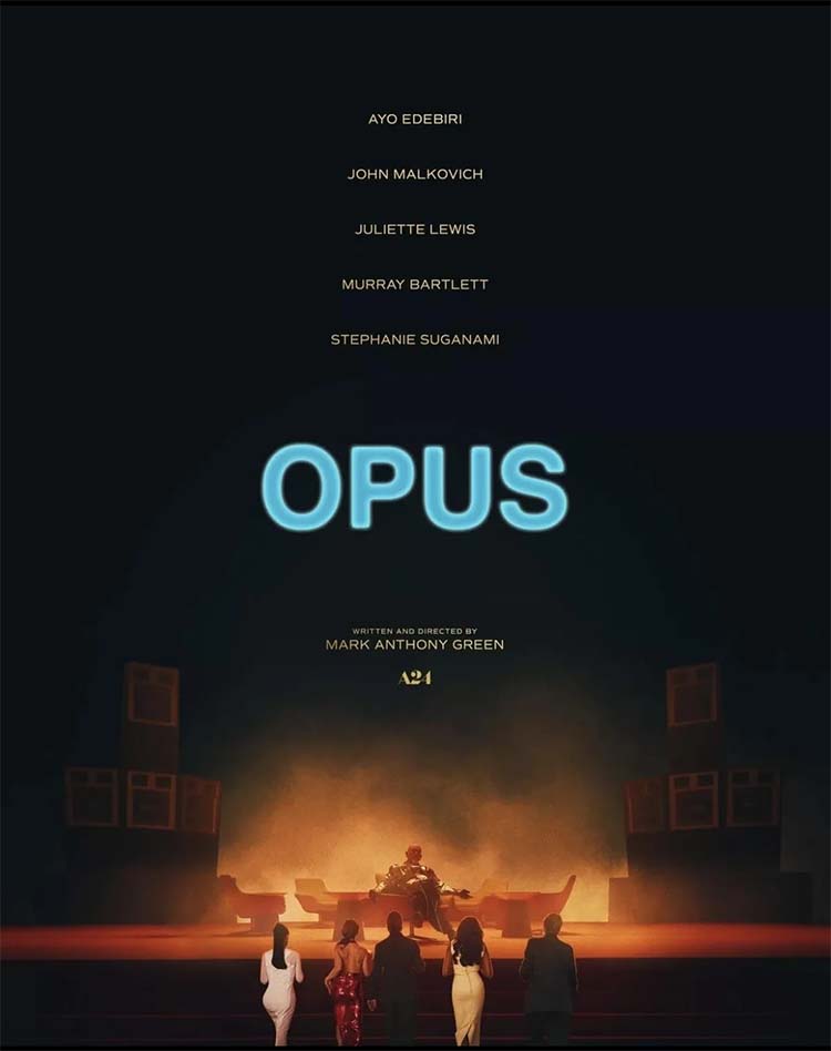 Tal é a realidade na qual habita Adrian Moretti, o cantor fictício interpretado por John Malcovich em “Opus” (2025), novo filme da A24 dirigido pelo estreante Mark Anthony Green. O artista, que prefere ser identificado somente por seu sobrenome, é um dos maiores astros dos anos 1990, responsável por colecionar hits, figurinos escandalosos, álbuns ambiciosos e muitos, muitos rumores e mistérios. Dos convidados ilustres recepcionados em seus camarins e badalados relacionamentos com figuras como Cindy Crawford, até boatos de haver comprado e vestido os dentes de Freddie Mercury, Moretti é, para dizer o mínimo, um excêntrico elusivo. No início do longa, um longo período longe dos holofotes, responsável por alimentar a atenção e a obsessão de admiradores ao redor do globo, é quebrado pelo súbito anúncio de um retorno triunfal, acompanhado de um disco que, nas palavras do próprio, almeja o posto de obra definitiva. Naturalmente, o lançamento é acompanhado de um bombástico anúncio no qual um seleto grupo de profissionais da imprensa e do entretenimento é convidado, sem muita sutileza, a conhecer a ampla área restrita na qual Moretti habita, junto com muitos de seus inúmeros seguidores.