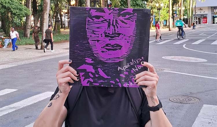 Quando eu produzi “APOKALIPSE NOW” em 2020, bem no início da pandemia, eu fiz tudo de forma muita rápida e já lancei. Foi um processo de ressignificar um trabalho que é sobre uma temática de um período em específico, que foi aquele ano. É um tema denso e envolveu entender como que ficou a cabeça, depois de tudo isso. Agora para a nova versão eu também remixei as músicas, e a masterização ficou por conta de Florencia Saravia-Akamine. Também tem uma faixa extra, que sou eu falando um pouco sobre isso. A arte também foi recriada, e a capa do LP ganhou uma xilogravura da artista visual Ivana Lima. Eu sou colecionadora de discos. Acho incrível a ideia de distribuir discos gratuitamente, é uma arte que você leva pra casa e perdura por décadas. Então lançar um disco de vinil é algo que me deixa muito feliz, poder compartilhar arte e música, incentivar encontros. É tipo um sonho que se realizou.