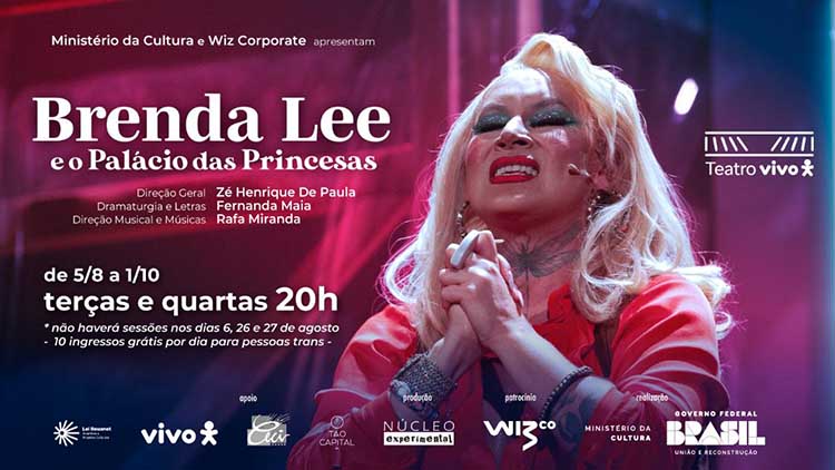 Em 1988 se instituiu a “Casa de Apoio Brenda Lee”, também conhecida como “Palácio das Princesas”, espaço fundamental para assistência médica e social para pessoas trans, travestis e homossexuais vivendo com HIV/AIDS. Essa história de dor, mas também de extrema resiliência, é contada nos palcos no musical “Brenda Lee e o Palácio das Princesas”, com direção geral de Zé Henrique de Paula, dramaturgia e letras de Fernanda Maia e com músicas e direção musical assinadas por Rafa Miranda – integrantes do Núcleo Experimental, o mesmo coletivo que assina o excelente musical “Codinome Daniel”, sobre o sociólogo, guerrilheiro e ativista gay Herbert Daniel.