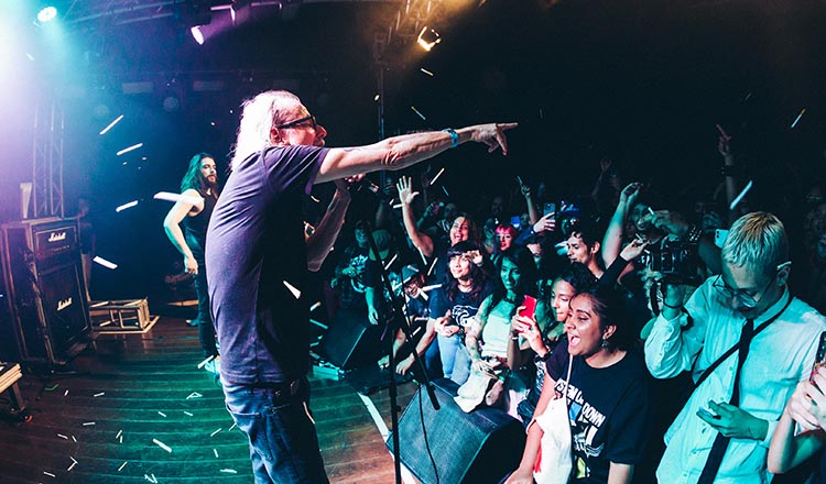 Na sequência, o palco Yguá recebeu o Realife, que iniciou sua apresentação com coros fantasmagóricos e riffs cortantes. Formada em 2017, a banda leva a cartilha do horror punk ao pé da letra: punk, hardcore e metal old school misturados a filmes B, contos de terror e críticas sociais em inglês. E o visual caprichado reforça a estética, com maquiagens pesadas, spikes e uma presença de palco agressiva. O repertório incluiu “Hero”, “Somewhere in Goiás”, e o hino antirracista “Ripping Off Your Skin”, além de “Cesium 137” e “Halloween in Brazil”. Foi uma paulada atrás da outra, mas ainda para um público pequeno.