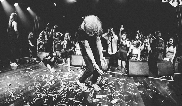 Também teve o Skylab mastigando uma cenoura e cuspindo os pedaços no público durante “O Corvo”. Liturgias no mínimo excêntricas, mas totalmente coerentes no universo skylabiano. O show acabou com o clássico “Matador de Passarinho”, com Skylab se jogando no chão e ficando imóvel por um bom tempo, enquanto sua banda se retirava para o camarim. Apesar de pedidos de bis, fãs jogando mais cigarros e outros sem noção batendo em sua bunda, o cantor seguiu inerte no chão como se simulasse a própria morte. Intermináveis minutos depois, levantou de repente, apenas para se despedir jogando beijos antes de finalmente se retirar do palco. Um final intenso, imprevisível e surreal, mas que fez todo o sentido na narrativa que se desenrolou dentro dos muros do Martim Cererê naquela noite.