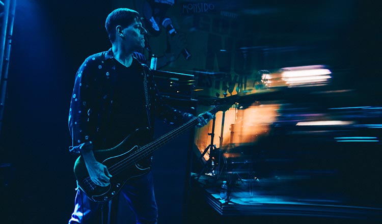 O duo Can Sad veio na sequência para bagunçar cabeças com seu rock instrumental de baixo e bateria, apoiado por bases pré-gravadas e samples que passearam de Choque de Cultura a Mamonas Assassinas. Luis Feitoza e Gustavo Vazquez mostraram uma sonoridade que funde noise, math rock, industrial e prog, com críticas ao capitalismo em seus títulos – inclusive uma bandeira da banda presa a um dos amplificadores dizia “Cansados sempre. Às vezes tristes, mas obedientes alienados, jamais”. Em vários momentos, o baixista falou fora do microfone e ironizou a cena, dizendo que o pedestal era apenas cenográfico. “Sem vocal, sem piadas”, para logo depois o baterista emendar o “eu vou mimbora pra Sum Paulu” de Dinho, no sample de “Jumento Celestino”. Teve até comentário sobre merch: “estamos vendendo nosso disco em fitas K7. Acho que pelo visto nós não sabemos mesmo como ganhar dinheiro”. No encerramento, Vazquez desafinou as cordas do baixo enquanto tirava riffs, deixando tudo ainda mais áspero e pesado. O anti marketing funcionou: comprei a fitinha K7 mais tarde.