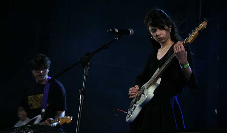 Da mesma safra jovem do novo indie brasileiro, mas com uma postura mais fechada, os curitibanos da terraplana entraram mudos e, praticamente, saíram calados. Ok, exagero. Eles agradeceram ao convite do festival e disseram estarem “felizes pra caralho de tocar em Belém”, primeiro show da banda na região Norte do Brasil. Fora isso, todo o restante do tempo da apresentação foi gasto na concentração em entregar um show coeso ao público paraense. “salto no escuro” e “desaparecendo”, que vêm abrindo quase todos os shows da turnê do álbum “natural” (2025) – incluindo o set especial da banda para a Audiotree disponibilizado nos streamings – foi uma perfeita amostra do que viria pela frente: dedilhados sutis, voz quase sussurada até a explosão de guitarras e bateria, numa massa sonora densa e arrastada. Por cerca 45 minutos, os curitibanos deram uma pausa na festa dançante da galera, convidando todo o público a olhar para os tênis enquanto riffs de guitarra fatiavam o ar (tal qual fez o DIIV no ano anterior). Não foi só bonito de ver e ouvir como também uma ótima preparação para o show seguinte.