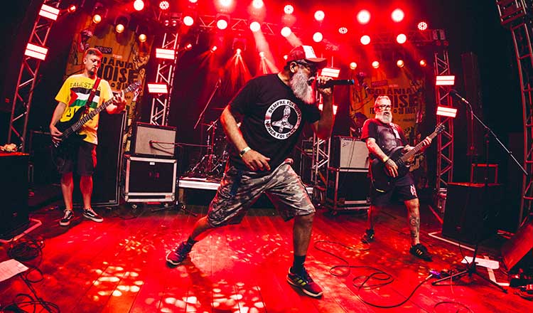 Na sequência, com “Só Não Vai Jair” de introdução, os veteranos do Ímpeto mostraram seu autoproclamado “hardcore geriátrico” no palco Pyguá. Fundada em 1998, a banda se posiciona como herdeira direta do punk como um espaço de crítica contra religião, capitalismo e fascismo. Teve música dedicada a todos os “milionazis”, blasfêmias como “Traído por Deus”, agradecimentos a Adélio Bispo pelos serviços prestados ao Brasil e uma demonstração da “dancinha do Satanás”. No encerramento, deixaram a mensagem convincente “envelheça com qualidade, não vire crente” e mandaram “Medo”, clássico do Cólera.