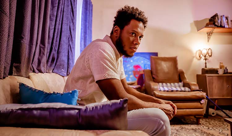 Dan: O que me chamou muito atenção desde o primeiro momento que eu li o Jonas e o roteiro de uma maneira geral, é que, em muitas manifestações artísticas e muitos filmes, em obras de audiovisual, a gente enxerga a temática racial pelo viés quase sempre da violência. E quase sempre a violência física. E a gente esquece que a violência e a morte da mente, a não validação da percepção de mundo de algumas pessoas parecidas comigo, também é uma violência. Uma violência extrema. Um personagem que tem o tempo todo a sua existência, o seu afeto, a sua percepção de mundo silenciada traz um viés da violência e de uma maneira muito inteligente pelo roteiro. De uma maneira muito atual. Eu acho que é um filme que vai… Eu tenho certeza e falo isso com toda sanidade: acho que esse filme vai trazer muitas discussões acerca dessa violência que esmaga a nossa população. A gente vê uma quantidade gigante de pessoas em situação de rua. Sabemos a cor de quem está no sinal. Sabemos a cor de quem está andando desesperado na rua. Uma imagem que me veio à cabeça há alguns anos, principalmente na pandemia, foi de um pai de família, em Brasília, andando por um condomínio pedindo comida. Esse homem se parecia comigo. Ele está naquela situação por uma conjuntura de fatores que são raciais. Sabemos disso. Então, ter um personagem que tem uma casa, que tem uma vida, mas que é o tempo inteiro silenciado por traumas que não foram criados por ele, me chama muito atenção esse tipo de dramaturgia, esse tipo de abordagem sobre questões caras à sociedade. E estou muito feliz de poder interpretar o Jonas. E a partir do meu trabalho, e do trabalho de todos nós, causar reflexão. Porque eu acho que isso é o vetor primordial do meu ofício. Acho que ser ator, ser artista, é para isso, também. Para causar reflexão sobre temas que nos cercam. Que, às vezes, a gente escolhe não falar ou há uma pressão muito grande para que a gente não fale. Para que a gente fique constrangido quando esses temas chegam a nós. Mas eu fico muito feliz de, por meio da meu trabalho, causar reflexão para essas questões.