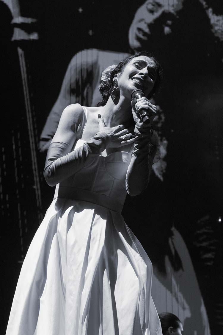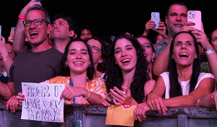 Com figurino rosa e flores no cabelo, Marisa Monte entrou no enorme palco transbordando personalidade e leveza. Acompanhada por sua banda (com Dadi, muito aplaudido, Pupillo, Alberto Continentino e Pedrinho da Serrinha) e pela orquestra de 50 músicos, a artista abriu a noite com “Vilarejo”, levando a plateia instantaneamente à emoção.
