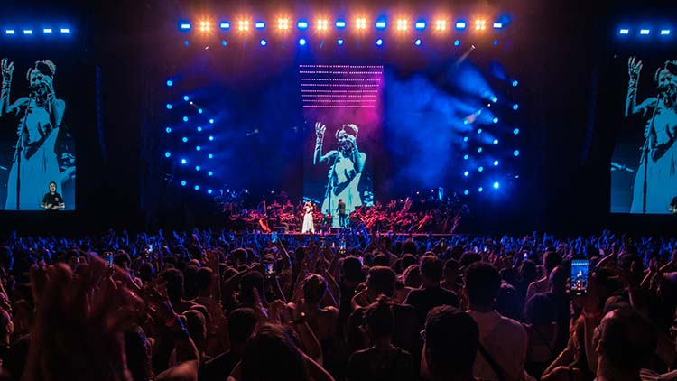 O cenário, composto por muita luz e um imponente telão (que reproduzia principalmente cenas do palco e da plateia), somado à presença da orquestra e banda, criaram uma atmosfera imponente e imersiva. Tudo funcionou perfeitamente e em harmonia, demonstrando que a equipe técnica também estava muito afinada com a proposta do show.