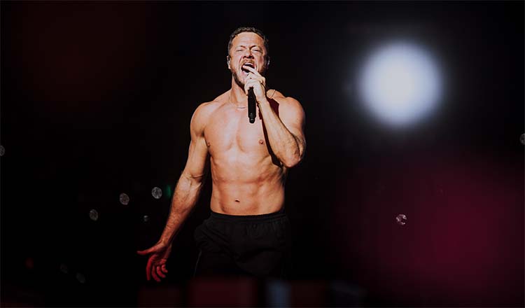 Após uma curta, porém correta e apaixonada apresentação da Lagum (que soltaram seu último disco, “As Cores, as Curvas e as Dores do Mundo”, neste mesmo 2025), a apresentação dos headliners começou, pontualmente, às 21hs. Efeitos de luz, telões gigantes e animações extravagantes anteciparam a entrada dos membros – com o percussionista Andrew Tolman – frente a um estádio completamente lotado. Foi impressionante a devoção e a paixão dos fãs em relação aos músicos, e, em especial, ao frontman. Dan Reynolds, aliás, parece saber exatamente o que seus admiradores esperam, e não perde tempo em entregar: já na faixa de abertura, “Fire In These Hills”, o cantor percorre a passarela que o leva ao meio do público (lugar onde, aliás, ele passa a maior parte da apresentação) de shorts e sem camisa, exibindo o corpo musculoso que o transformou em sex symbol. E a participação do público é notável: já em “Thunder”, a segunda faixa, o coro da audiência pôde ser ouvido quase tão alto quanto os próprios instrumentos, senão mais.