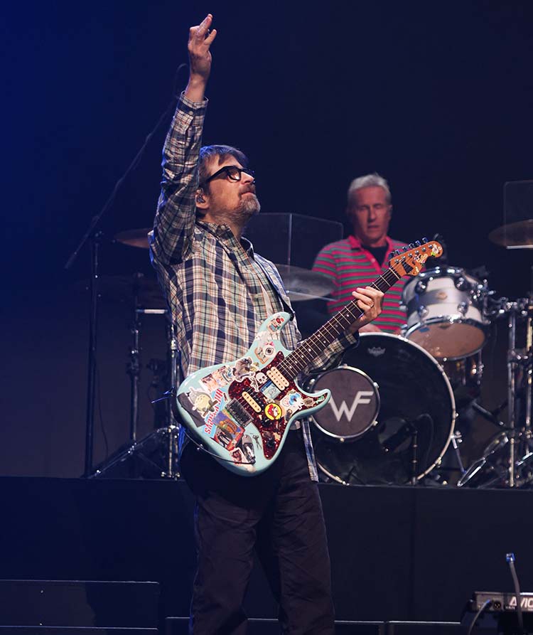 Grande atração do dia, o Weezer que chegou ao Brasil pela terceira vez (a segunda em São Paulo) trazia consigo, em posts da Índigo, a promessa de reverenciar seu álbum de estreia, o icônico “Blue Album”, de 1994, e “My Name Is Jonas” deu início ao sonho indie turbinado por guitarras ruidosas e coro adultescente. “Dope Nose”, single de “Maladroit”, o quarto disco lançado em 2002, trouxe ao cabo uma citação de “Troubmaker” (single do “Red Album”, de 2008) cravando a ideia de que a banda não seguiria um script padrão, tocando seu primeiro álbum de cabo a rabo, mas intercalando canções dele com sucessos de diversas fases numa dignissima surra de hits para não deixar nenhum fã triste – ok, o som (Zzzzz) falhou em alguns momentos e, em outros, surgia tão embolado a ponto de tornar irreconhecível o começo de uma canção altamente reconhecível como “Hash Pipe” (do “Green Album”, de 2001).