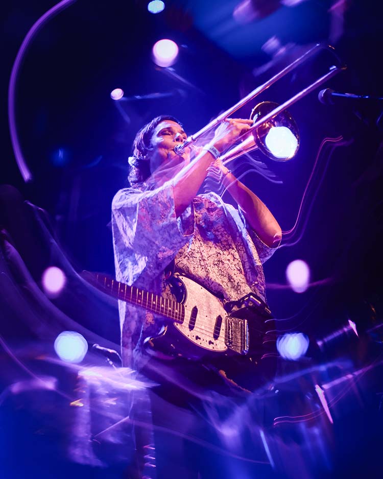 De forma semelhante ao Yo La Tengo, o público também entrou em estado pleno de atenção. O que é mais do que compreensível, porque logo no início fica claro que tudo o que o Stereolab coloca em cima do palco é importante, da luz aos ritmos circulares, synths e cordas presentes nos arranjos. O limite parece a própria imaginação de Lætitia e seus associados. A vocalista ainda arriscou diversos solos de trombone em temas como “Vermona F Transistor”. Um dos momentos mais sublimes foi quando executaram “The Flower Called Nowhere” (de “Dots and Loops”, 1997) com suas diversas evoluções e referências que evocam psicodelia, pop francês e até mesmo um tiquinho melódico de Clube da Esquina (mais do que bem-vinda a homenagem anterior ao saudoso Lô, portanto). Só que mesmo fundamentado em sonoridades criadas e consagradas no auge do século XX, o Stereolab continua soando atemporal, incluindo jams e momentos improváveis como um trecho quase metal-jazzístico em “Melodie is a Wound” que faria os jovens da Papangu abrirem um sorriso. Ou no groove dançante de “Miss Modular”, anunciada por Lætitia antes de falar um “eu te amo” em português e conquistar todos os corações que ainda não haviam sido hipnotizados pela banda até então. A francesa também avisou (dessa vez em inglês) para “continuarem com os sapatos de dança” e emendou a viagem sônica da igualmente dançante “Household Names”.