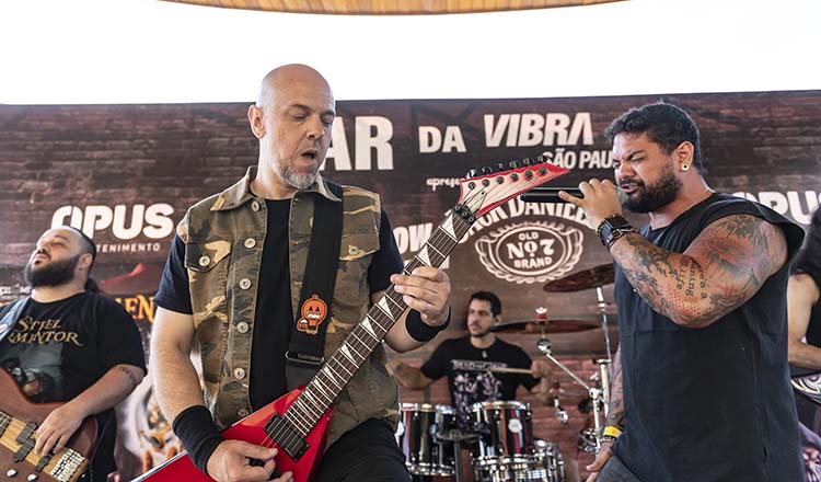 O aquecimento da noite começou do lado de fora, no Bar da Vibra, que fica colado à casa de shows. Quem chegou cedo pôde curtir o Steel Tormentor, banda cover do Helloween – “os pais da porra toda”, como ressaltou o vocalista –, que colocou todo mundo no clima certo. O sol ainda brilhava, mas os riffs pesados e os gritos dos fãs transformaram a tarde em uma espécie de prelúdio para a energia que estava por vir. O bar, normalmente ponto de encontro de quem chegava cedo, virou um mini-palco de celebração do metal, e dava para ver, nos rostos das pessoas, a expectativa de que aquela noite seria inesquecível.