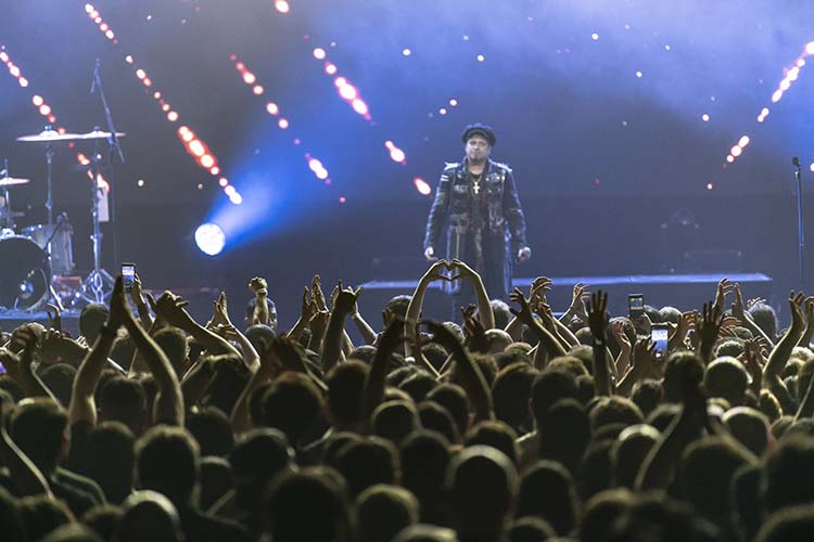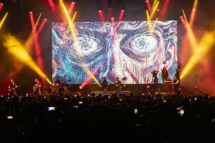 O palco, desta vez, era simples – nada comparável à grandiosidade do Bangers, que tinha pilares e portões simulando a entrada de uma mansão abandonada –, mas não precisava de nada extravagante para impressionar. Belíssimas imagens no telão criavam cenários fantásticos que, combinados com luzes e efeitos visuais, transformavam o palco em um espaço épico e envolvente. A simplicidade física era mais do que compensada pela riqueza audiovisual, e cada música parecia ganhar vida própria na tela atrás da banda.