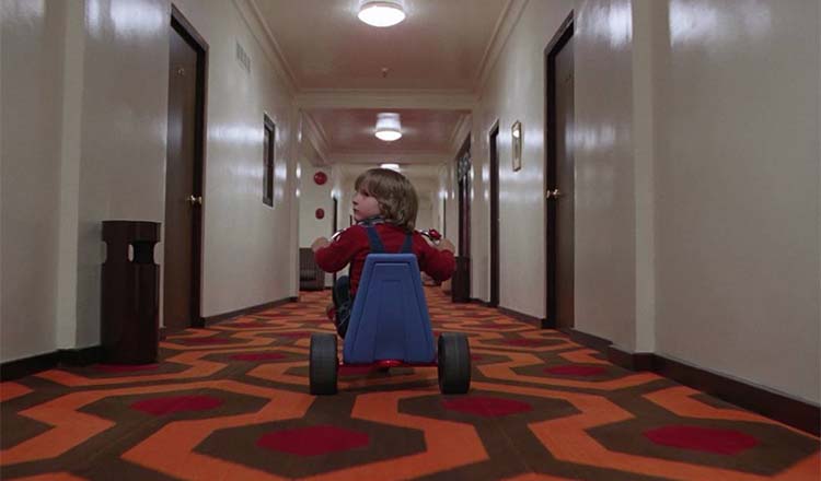 E se a direção de Kubrick foi definida aqui como matemática e pragmática, isso se justifica a partir de um mergulho mais aprofundado e de olhar atento em seu opus advindo do horror. A partir do labirinto de corredores do próprio hotel, com tomadas, inclusive, notoriamente filmadas por Garret Brown, responsável pela criação da Steadicam, revolucionário equipamento de captação capaz de manter a imagem em um equilíbrio mesmo com um constante movimento, vemos o garotinho iluminado Danny Torrance pedalando seu velotrol em esquinas que se aprofundam em paralelo aos crescentes tormentos da mente de seu pai, um ex-alcoólatra em constante tentação.