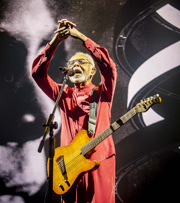 Quando Gil pisou no palco, o tempo, de fato, se curvou. “A Paz”, “Aquele Abraço”, “Drão”, “Refazenda”, “Vamos Fugir” … cada canção parecia dilatar a noite, arrancando do público não apenas coros afinados, mas histórias inteiras guardadas no peito de cada um. O repertório não passava; ele se assentava, como quem pede licença para ficar.