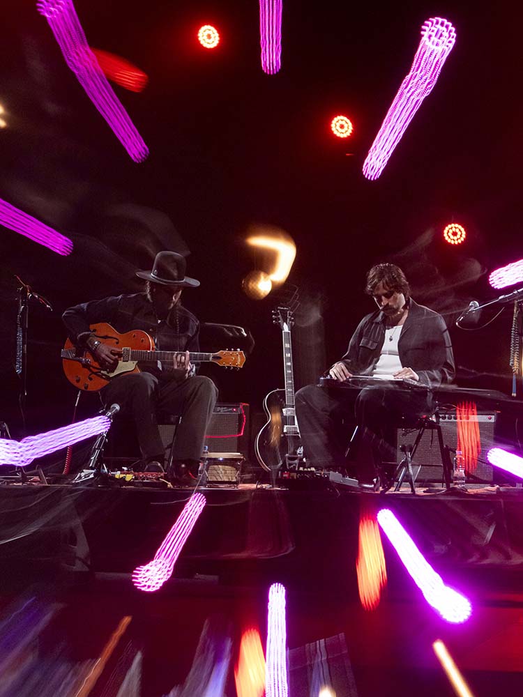 Para além das guitarras, teclas, tambores e microfones que fazem parte desse vasto universo da música, existe uma infinidade de efeitos analógicos e digitais que ajudaram a moldar muito dos estilos que apreciamos hoje. Um exemplo é o loop, uma técnica que apareceu no século XX por meio de compositores vanguardistas como Pierre Schaeffer e Karlheinz Stockhausen, influenciou nomes fortes do rock progressivo como Robert Fripp e Brian Eno – que por sua vez influenciaram toda uma leva de pedais e aplicativos com a mesma função: capturar um trecho musical que pode ser executado de forma cíclica. Em outras palavras, você pode gravar por conta própria uma percussão ou uma base de violão, deixar tocando, e aí tocar mais alguma coisa ou cantar por cima dessa base, sem a necessidade de uma banda completa ou um grande estúdio por trás. Foi com esse artifício que o loop se transformou em atrativo para figuras da música pop como Ed Sheeran criarem hits no início desse século, e é dessa mesma escola que se forma a base das composições dos Hermanos Gutierrez, pelo que se pôde observar na apresentação realizada em um lotado Teatro Bradesco (SP) no início de fevereiro, em noite do Queremos!, um ano depois da primeira passagem pelo Brasil.