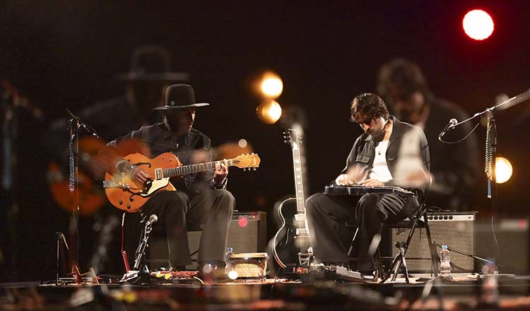 Já confortáveis em seu universo particular, os Gutierrez aproveitaram também para saudar os gringos Mr. Dan Auerbach (Black Keys), produtor dos últimos álbuns que também é co-autor da canção “Tres Hermanos”, executada ao vivo juntamente com “Hold on to the Light”, tema de Jack Johnson tocado pela primeira vez por Esteban e Alejandro, que consideram Johnson como um herói e influência. De fato, o clima sossegado e algo surfista se faz presente nas canções, mesmo quando estas fazem mais referência ao deserto do que ao mar. Seguiram com canções de “Bueno y Malo” e tiveram outro grande momento com “Esperanza”, onde aproveitaram para celebrar suas raízes latinas e do quanto significava estar se apresentando nos países do continente. Houve espaço até para uma pequena homenagem brasileira durante a canção, com uma levada mais bossa nova que recebeu aplausos do teatro.