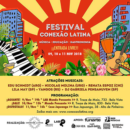 Três frentes, três endereços, um único propósito. O Festival Conexão Latina chega à sua primeira edição trazendo atividades de música, gastronomia e educação, que se realizarão em três espaços de expressão na cena cultural de São Paulo. O objetivo do evento é, assumidamente, imodesto: ser mais uma iniciativa de integração latino-americana pela cultura.